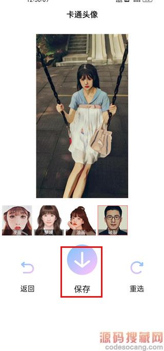 2、选择一张照片,卡通效果如图,点击保存即可保存在相册