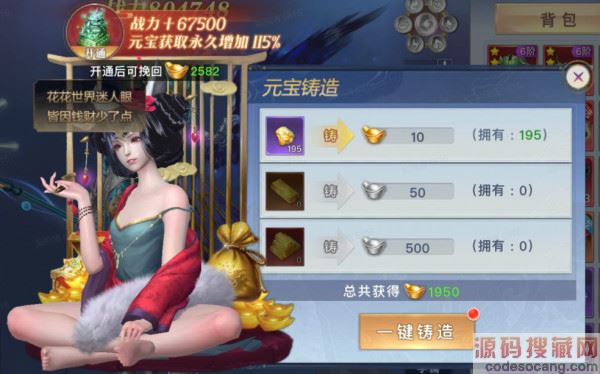 想要获取更多元宝的玩家,可以游戏内购买相关的礼包