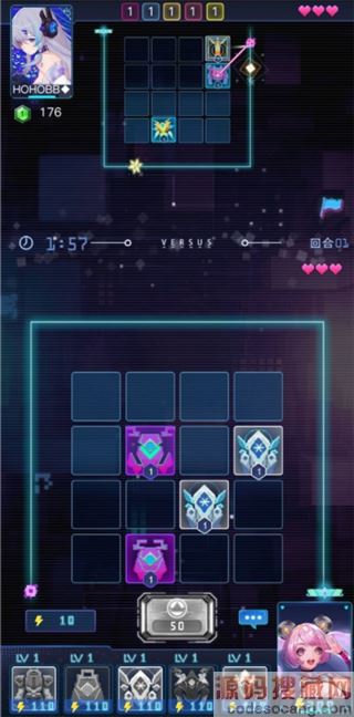 每一场战斗可以配戴一个角色,每个角色有不同的能力,分别为主动技能以及被动技能,主动技能需要能源消耗,建议在适当的时刻使用。
