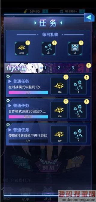 每天任务都会刷新,可以通过不同的战斗模式领取奖励。