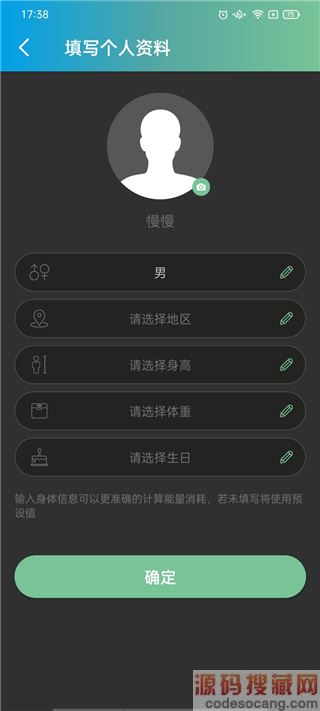 3、填写自己的资料,包括地区、性别、身高、体重、生日。