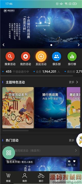 8、在俱乐部中可以搜索活动、发起活动、俱乐部、排行榜等功能。