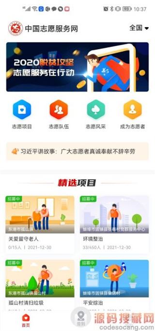 3、登入成功之后可以点击首页的志愿项目,大家可以现在自己想要参加的项目,首先可以先选择一下地区。