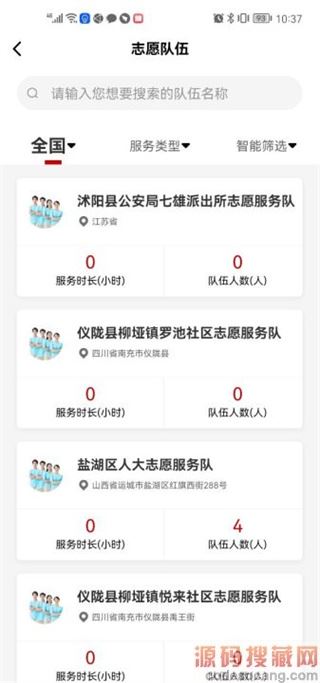 4、在旁边的志愿队伍时,用户也可以选择自己想要参加的志愿服务队,这里也要看看地区哦!