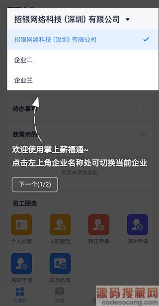 1、欢迎使用本软件,点击左上角【企业名称】处可切换当前企业。