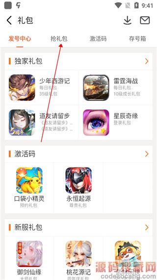 5、在抢礼包界面中找到自己所玩的游戏并点击进入领取。