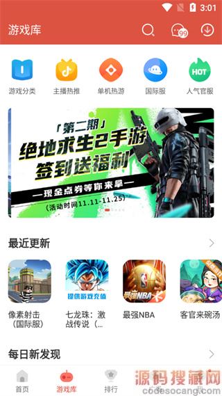 3、点开游戏库,有游戏分类、免费软件、单机热游、国际服等多种类型的游戏推荐;