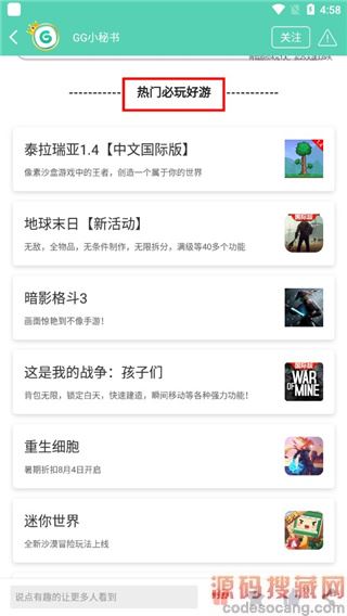 4、继续下拉还有GG小秘书给大家推荐的热门必玩游戏;