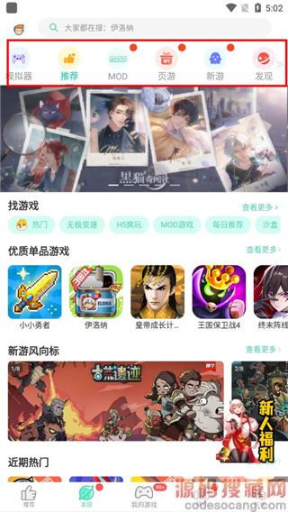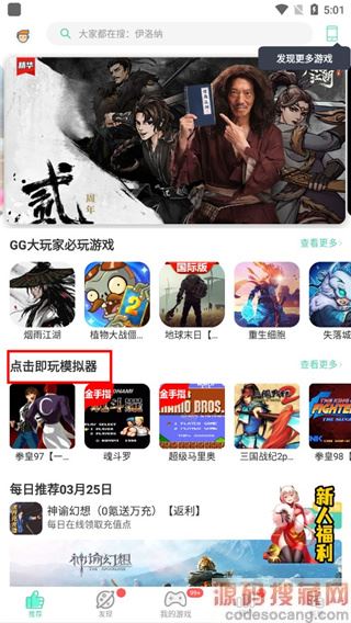 7、选择这个功能以后你会发现首页的界面发生了一些变化,原本的热门精选变成了点击即玩模拟器,不用下载直接点击就可以畅玩;