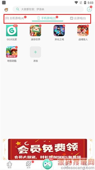 9、选择中间“我的游戏”就可以看到你玩过的主机游戏和你手机里的游戏以及云端游戏;