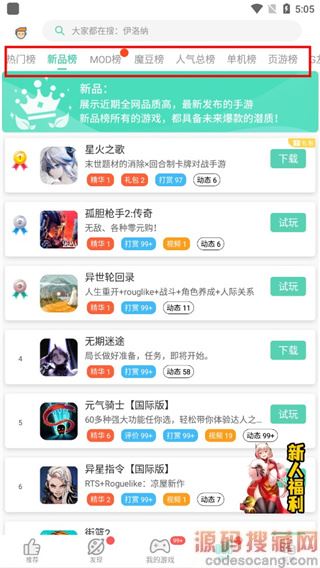 10、看到“排行”这里有各种各样的排行榜,新品游戏,人气排行榜等等;