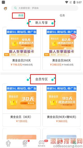 11、选择最后一个板块“得到”,商城包括新人专享和会员专区,购买会员开通更多权益;