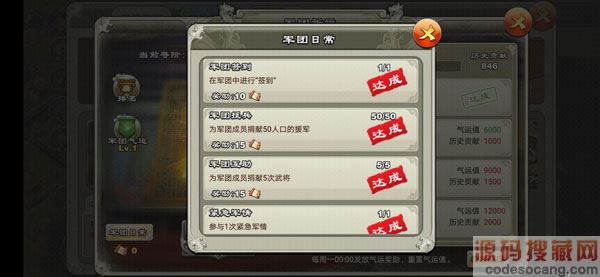 2、捐将。正常情况下,捐将也是都能完成的,但是因为捐将牵扯到要6星以上的将,所以对于一些萌新来说还是有些难度的,因此我的建议是对于手头6星将比较多,日常任务可独立完成的大佬来说,可以发扬一下,不要求将的星级,并在发布援将任务做好说明,比如“星级随便,请给刷祈运的”等等,然后其他的大佬就尽量不要援助这种的了,除非时间不足哈。两次援将一般需要8个,而完成这个任务只需要捐5个,所以军团多几个发扬风格的大佬,基本就能保证所有人都能完成捐将任务,而且不会产生一些纠纷了。