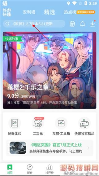 1、打开好游快爆游戏盒后,点击右上方的放大镜;