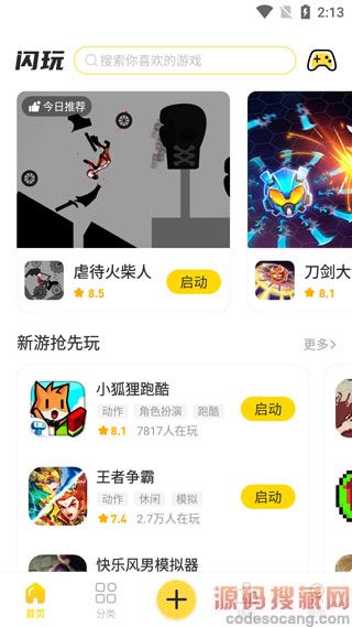 1、在本站下载闪玩app并打开软件,在首页可以看到许许多多的热门游戏;