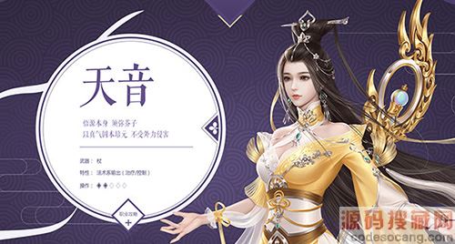 职业特点:修炼大梵般若的天音,慈悲为怀,气质似已超然世外。天音寺持杖修行,技能多为法术系治疗,以防守见长,招式如佛光普照,可以救济世人,恢复气血。第三重“佛陀”开启后,可修习“大梵般若”、“万象生佛”等技能,在给敌方以强大杀伤力的同时,也能给自己和队友持续的治疗效果,似渡众生于万劫。