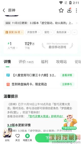 5、找到想玩的游戏点击进入可以查看游戏详情、游戏福利和攻略,用户还可以点击软件下方的下载来进行游玩;