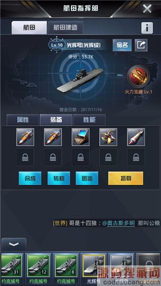 告诉大家一个关于弄航母的小技巧。很多玩家都很苦恼与心烦,航母的装备老是顶来顶去的,对于平民玩家来说一个好装备非常难弄,弄到了又被顶没了那不要哭死啊?所以在这边我告诉一个大家一个方法,当你拿到一个好的航母可以很快地给他开出很多孔来。上图大家也看到了这个光辉号已经有五个孔开出来了。据我个人初步预算基本上有500个白色装备应该能把十个孔都顶开,反正最多不会超过一千吧。大