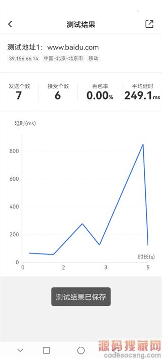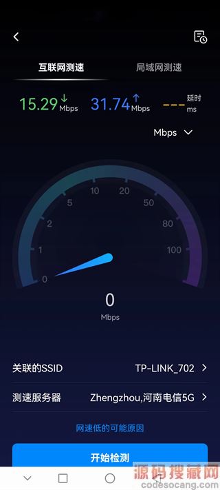点击测网速按钮,可以测试网络的上传和下载速度。