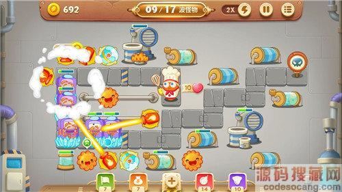 太阳花和雪球都是范围型炮塔,可对多个目标进行攻击,而汽油炮则弥补了两者攻速较慢的缺点。嘿嘿,只要怪物进入太阳花的攻击范围内,雪球就会为怪物送上第一道大餐减速,~慢下来的怪物遇上太阳花的强力灼烧和汽油瓶的持续性火力攻击,还有何还击之力呢。