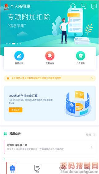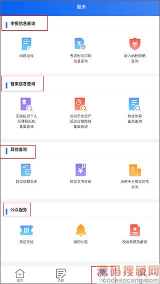 打开软件,就可以看见我要办税、我要查询、公众服务等功能特色。