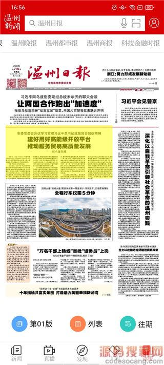 6、在读报中有温州日报、温州晚报、温州都市报、温州商报、科技金融报,同时支持查看读报的列表、往期、第01版;