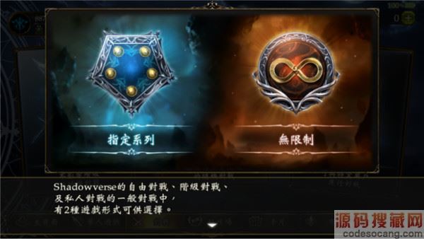 游戏阶级对战:指定系列和无限制。通常无限制难度比较大,因为无限制可以用指定系列的套牌以及无限制专属套牌(即全部卡牌)。指定系列则是相对缓和了玩家对战的难度。
