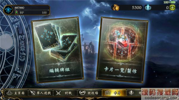 五、卡片:编辑牌组与卡片一览/制作。编辑牌组可以对40张卡牌进行编组处理,有指定系列和无限制两种类型。卡片一览/制作,则是对全部卡牌的浏览以及卡牌的制作。