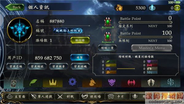 三、对战:自由对战、阶级对战、私人对战三种模式。其中阶级对战是主要玩法,通常在达到一个大段位时会经历4回合晋级挑战胜利2场即可晋级,如C3晋级B0会有4场晋级赛以此类推。私人对战则是可以邀请好友以及网友进行开房间对战,输入对战房间号进行双人对战。