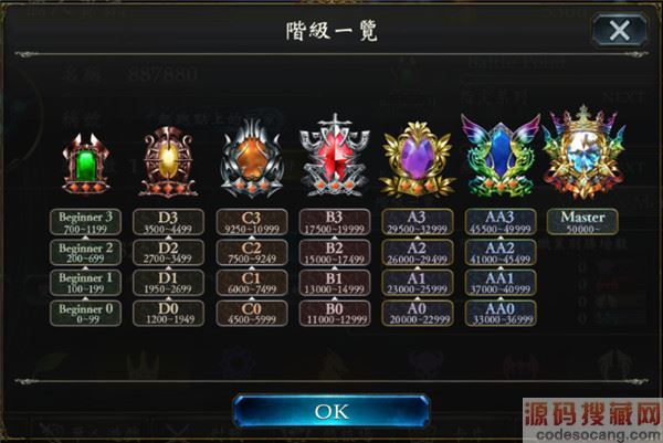 2.阶级一览:分为beginner初学者、D、C、B、A、AA、Master大师