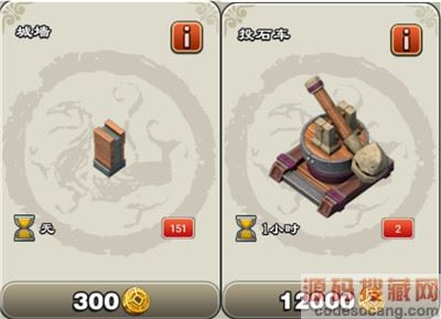 4、投石车:是抛射巨大石弹的战争机器,能对远距离的目标造成高额的范围伤害,但无法攻击临近的目标,攻击的速度也是相对较慢