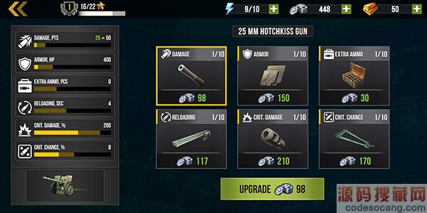 7、胜利后获得的奖励资源可以用来强化火炮的属性。