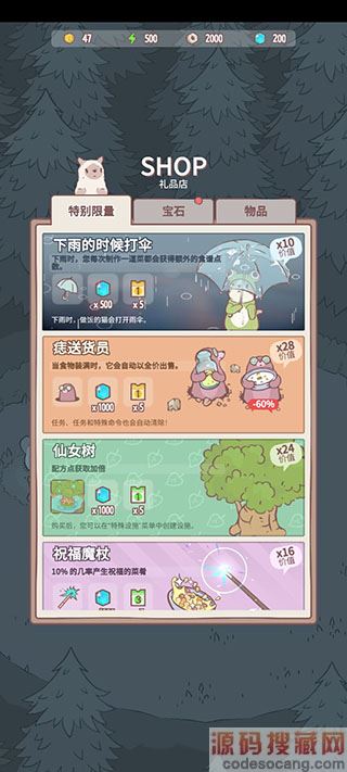 猫咪每生产一份菜,都能够获得额外的食谱点,食谱点就是精力。下雨时,做饭的猫咪会自动打开雨伞。