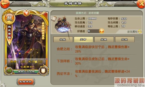 三国乱世之中,英雄间的恩怨情仇衍生出了“天命”,当收集了天命中对应的满级武将时,武将就可以获得生命和伤害的百分比加成。