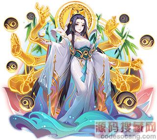 大慈大悲的千手观音慷慨无私地化解着世间无数的苦难。千手观音还将携带强大的御仙技体系,战斗开始时,将为全场附加,令己方每次出手前立刻获得怒气和魂意的回复,并对敌人造成高额的真实伤害。