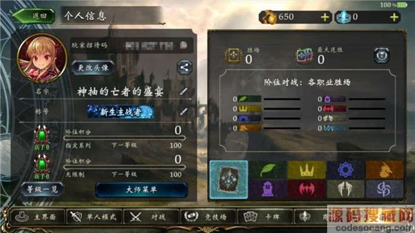 在这里你可以变更你的名称、称号、徽章以及旗帜。右侧为你的游戏段位以及游戏累计分数。下方为阶位对战:职业胜利场数。