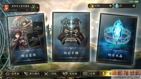 商店内可购买装饰、卡包以及水晶。装饰大致为购买不同类别的卡背以及主站者造型,需要消耗金币以及相对应的水晶。