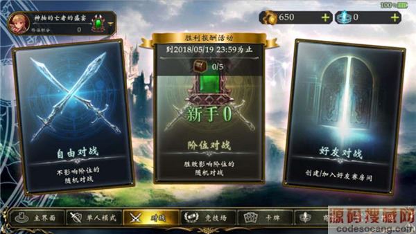 对战里分别有自由对战、阶位对战和好友对战三种模式。
