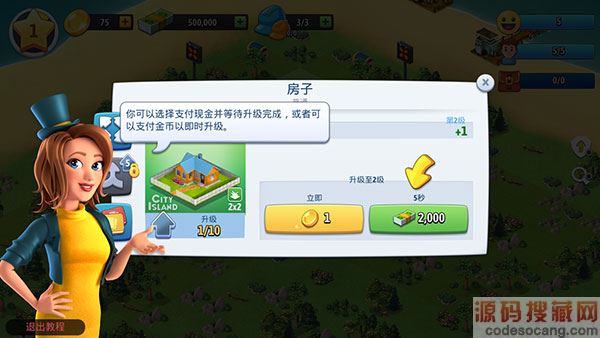 3、升级时间结束后,点击场景中的箭头即可完成升级。