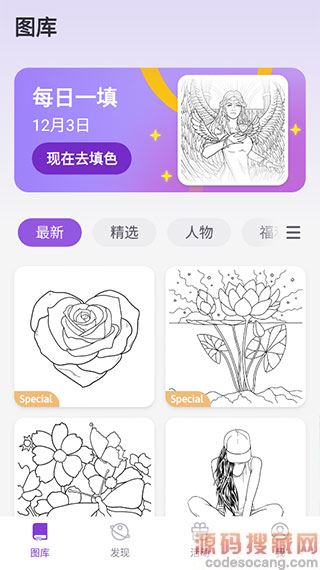 1、在本站下载安装好数字填色最新版后,打开进入图库,按照分类自由选择自己喜欢的类型进行填色。