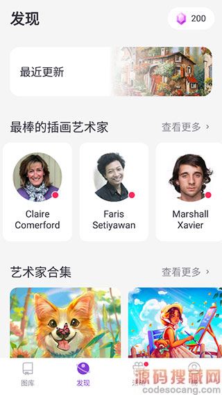 7、点击“发现”还可以找到更多的插画艺术家精品作品,都非常推荐!