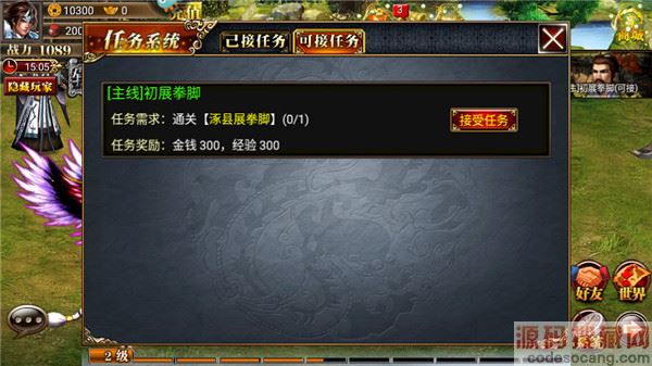7、当熟悉游戏之后,进入任务界面接受任务。