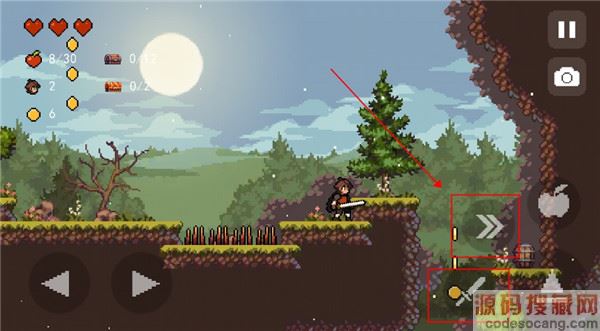 5、左边两个按键是左右移动,右边的则是跳跃键,双击可以二段跳,可以用来躲避敌人攻击和翻越障碍物
