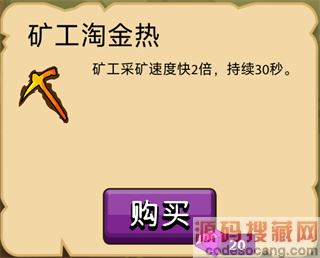 1、矿工淘金热:矿工挖矿速度翻倍,持续30秒。