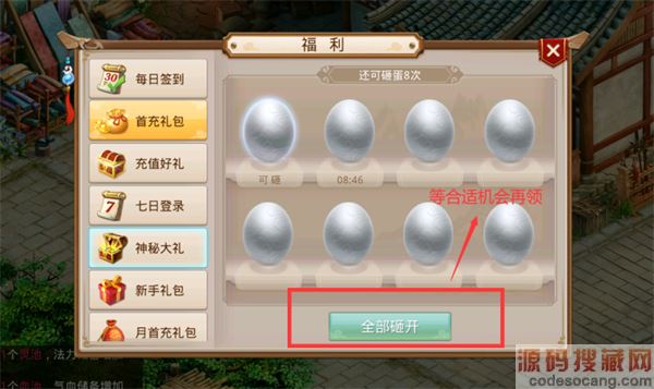 但是当我们做了几分钟主线任务时,福利那边会弹出红点,其中的神秘大礼会提示我们可以领取了。这时候千万不要领!因为神秘大礼的奖励是根据人物等级计算的,当我们升到一定等级后领取效果更佳。
