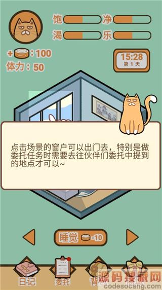 4、点击场景的窗户可以出门去,特别是做委托任务时需要去往伙伴们委托中提到的地点才可以;