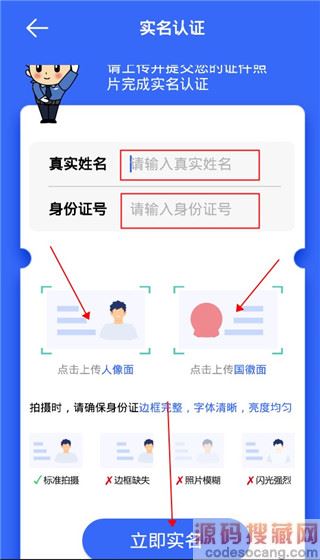 4、输入真实姓名和身份证号码,然后拍摄身份证正反面即可成功认证