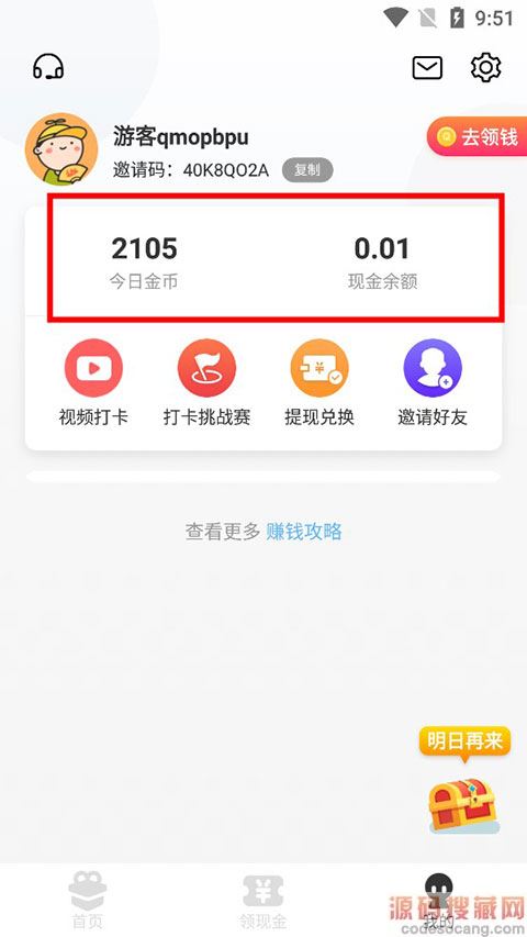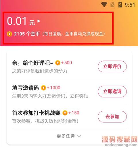 3、在这里,大家也可以选择填写邀请码,或者是参加打卡挑战赛,获得金币。