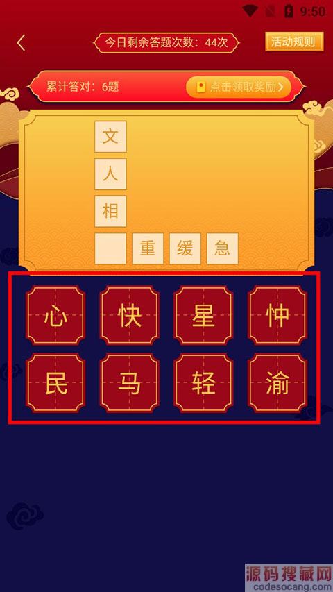 2、进入之后,根据提示,填写对应的词语,即可获得金币,金币可兑换成现金。