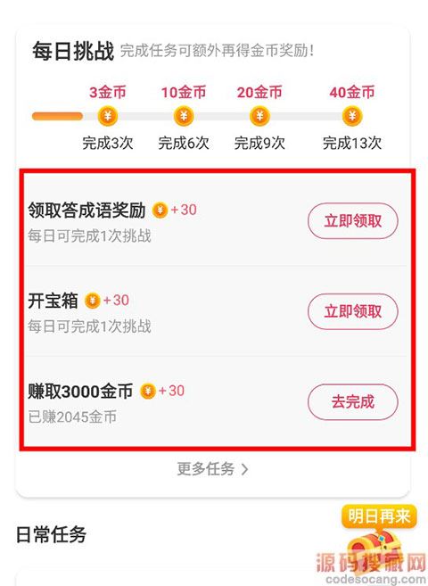 4、除了每日活动之外,大家还可以在每日挑战中领取金币,每完成一次挑战,即可领取该挑战的金币。